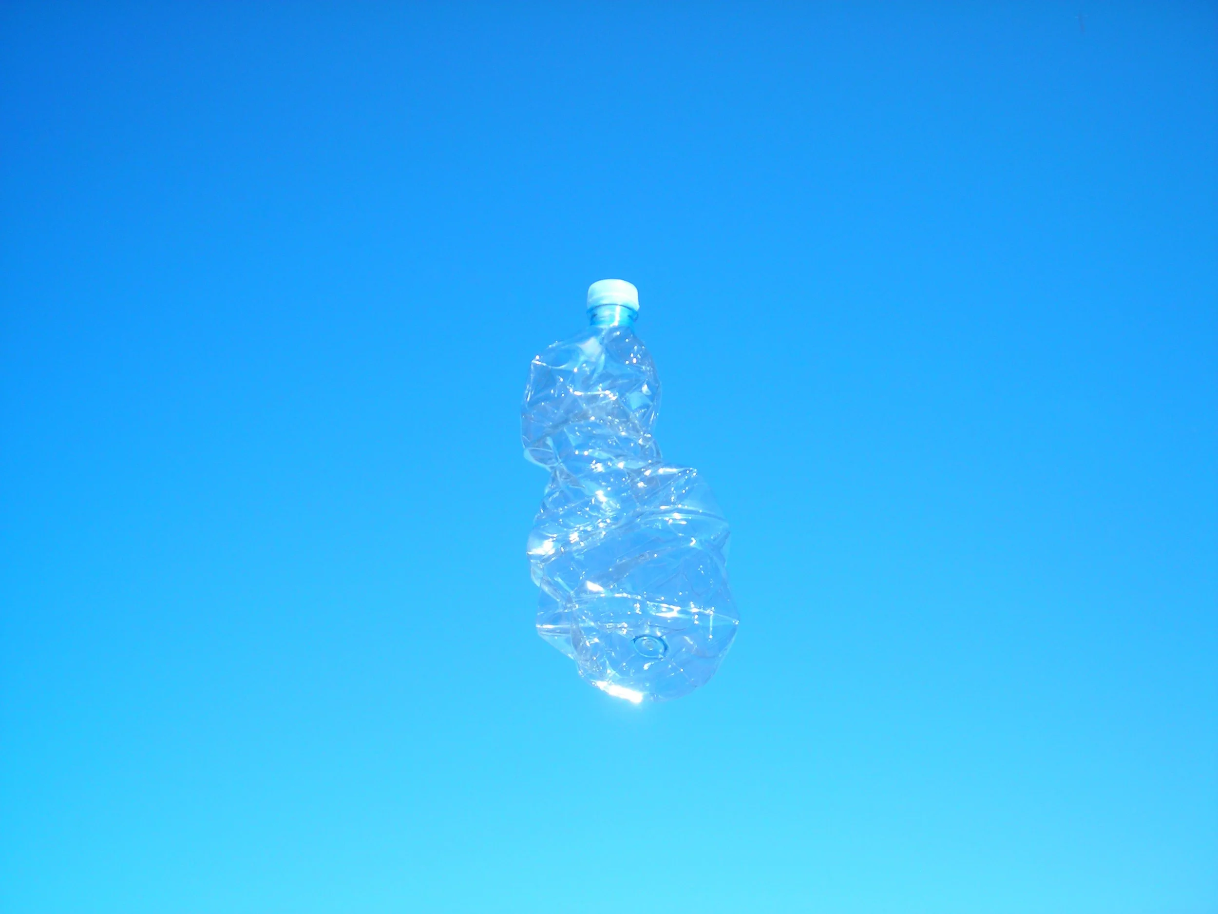 A crushed plastic bottle, suspended among mountain trees, its contents tinted blue. Hanging still and silent, it becomes a fragile relic, a trace of human presence absorbed by nature. The image speaks of solitude, contamination, and impermanence, quietly reflecting on our impact within the landscape.
